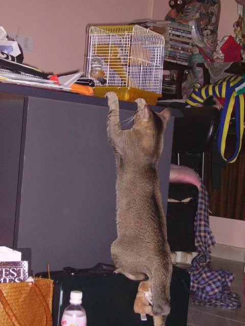 Anyways I have to be confined in a "cage" till my leg heals. I can't wait to jump around and pounce on the toys around me!