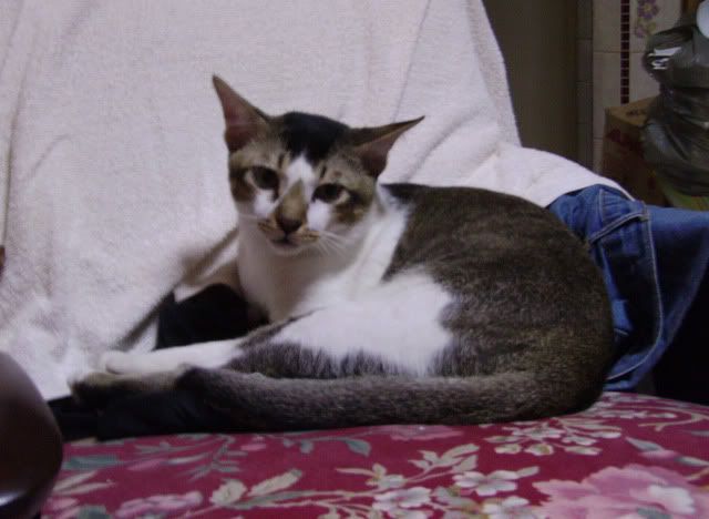 So Nanny Joy volunteered her denim jacket (a bit stupid anyway) and the threesome approached the kitty cautiously. To my surprise she didn't hiss at us, nor puff up. She meowed and allowed me to sayang her head. Immediately, I scruffed her and caught hold of her, and she just allowed.
